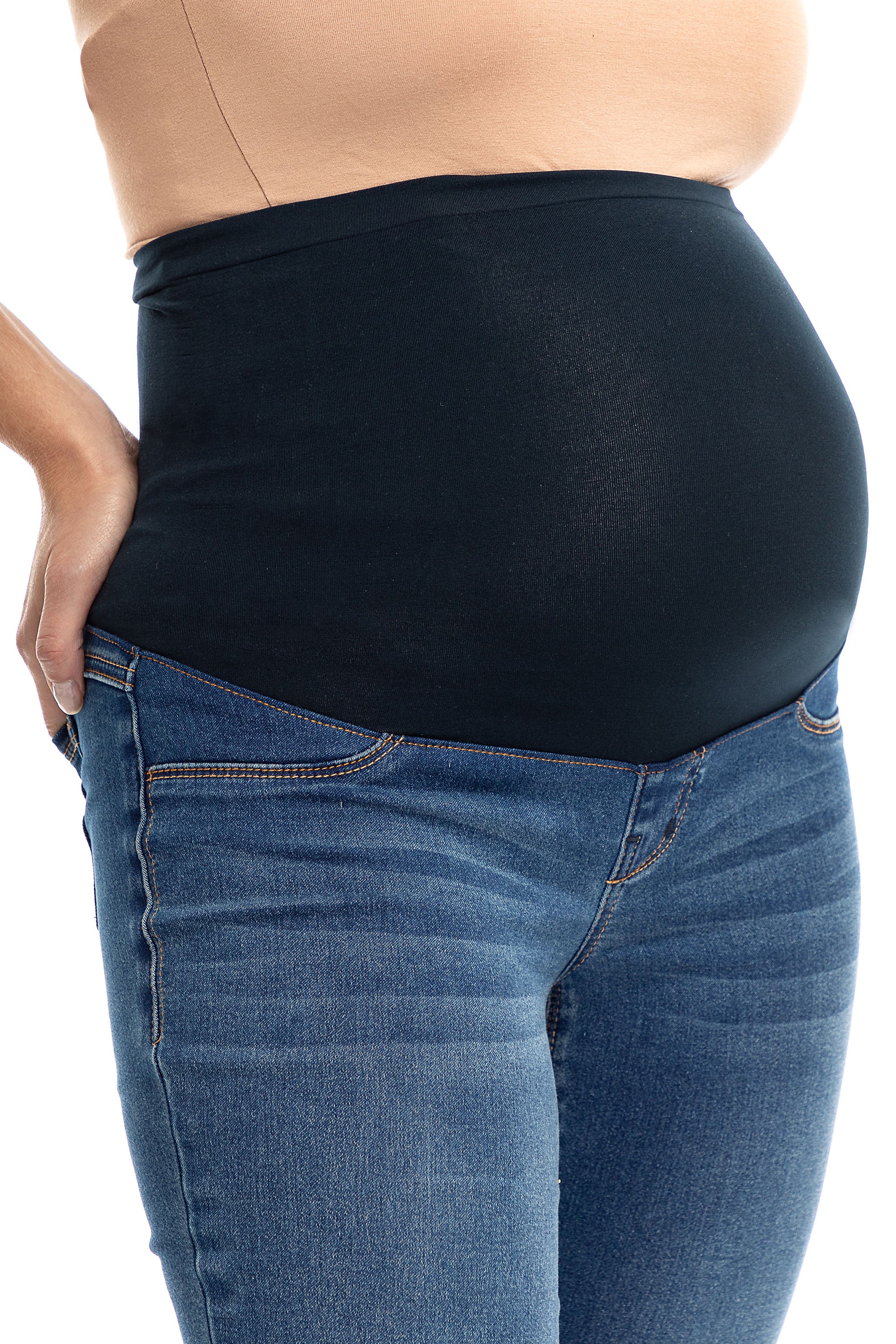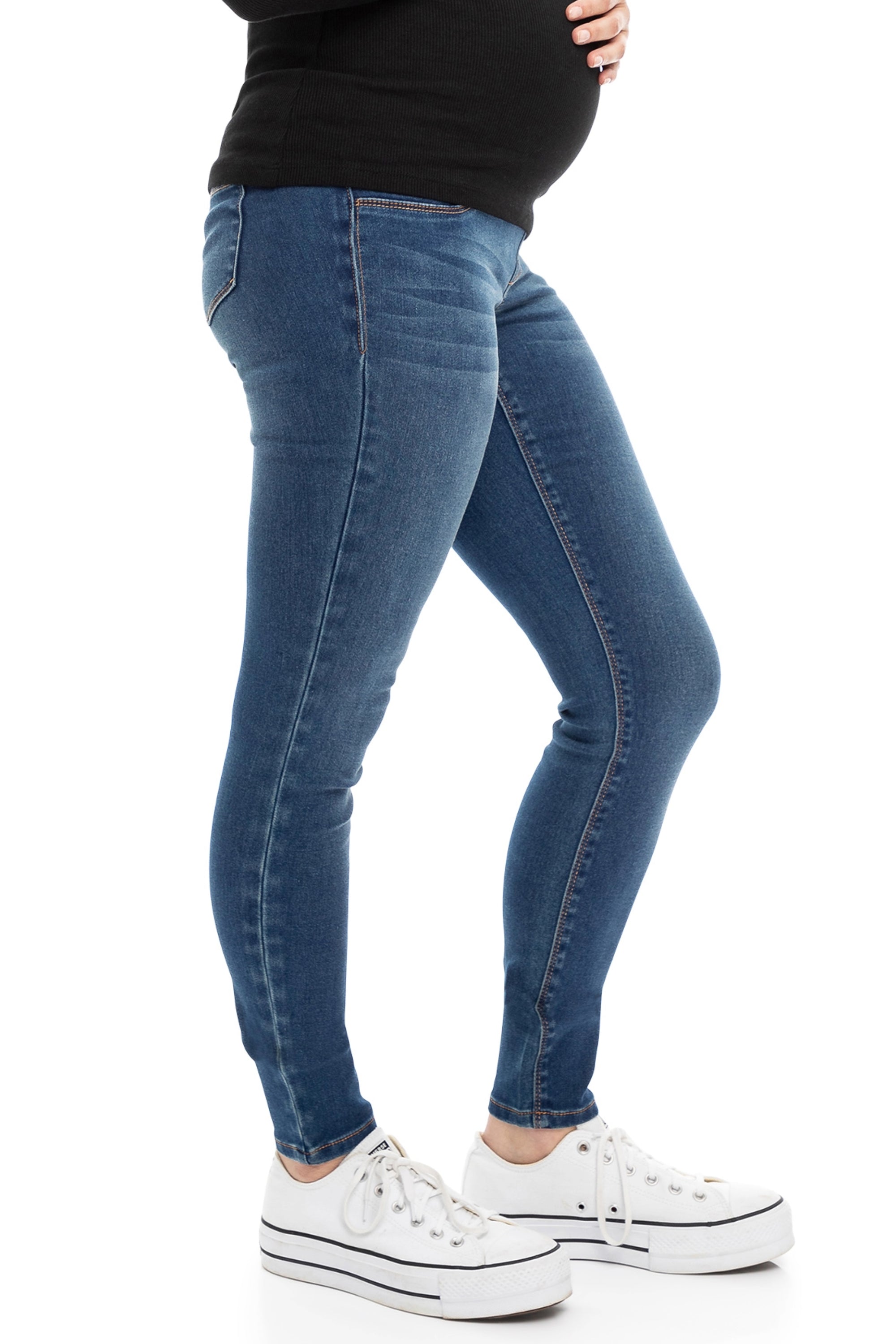 A maternity denim engineered for the perfect fit with the ultimate level comfort. These full length, 32" inseam, skinny jeans are made with a soft belly band to hug & support your growing baby bump through pregnancy. You tall mamas who don't like cold ankles in the winter are in luck! A true must-have for every expecting mamas wardrobe!