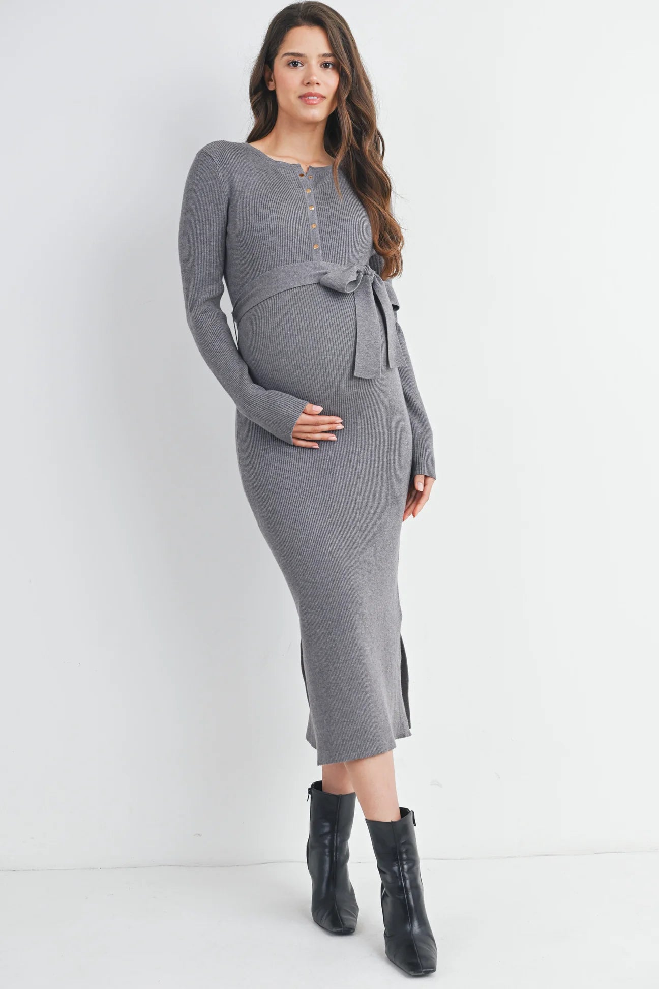 Your favourite henley has been made into a dress! This beautiful maternity dress is a fall/winter staple for you dress loving mamas. Beautifully made in a soft & stretchy fabric, this dress will grow with you throughout pregnancy and be a great option for those who breastfeed.