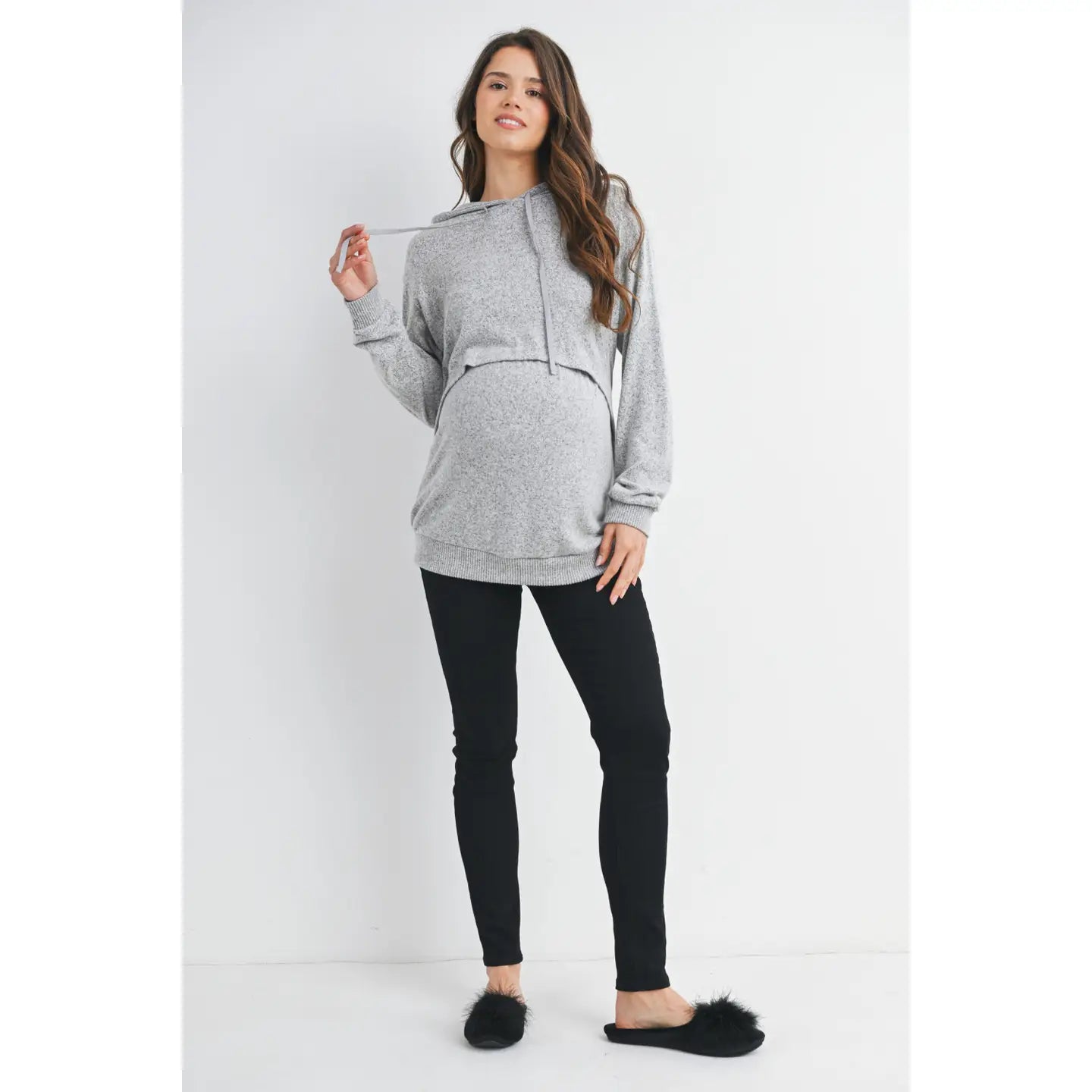 When function meets cozy! This maternity & nursing friendly hoodie is exactly what you need for those cooler days whether you are rocking a bump or breastfeeding on the go. Made in a super soft fabric that will grow with you throughout and flatter the postpartum body.