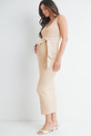 You are sure to be a total show stopper in this amazing ribbed dress! This dress is for those who love showing off the changing curves in your body as your progress in your pregnancy. Complete with a belt to add that accent on the waistline.