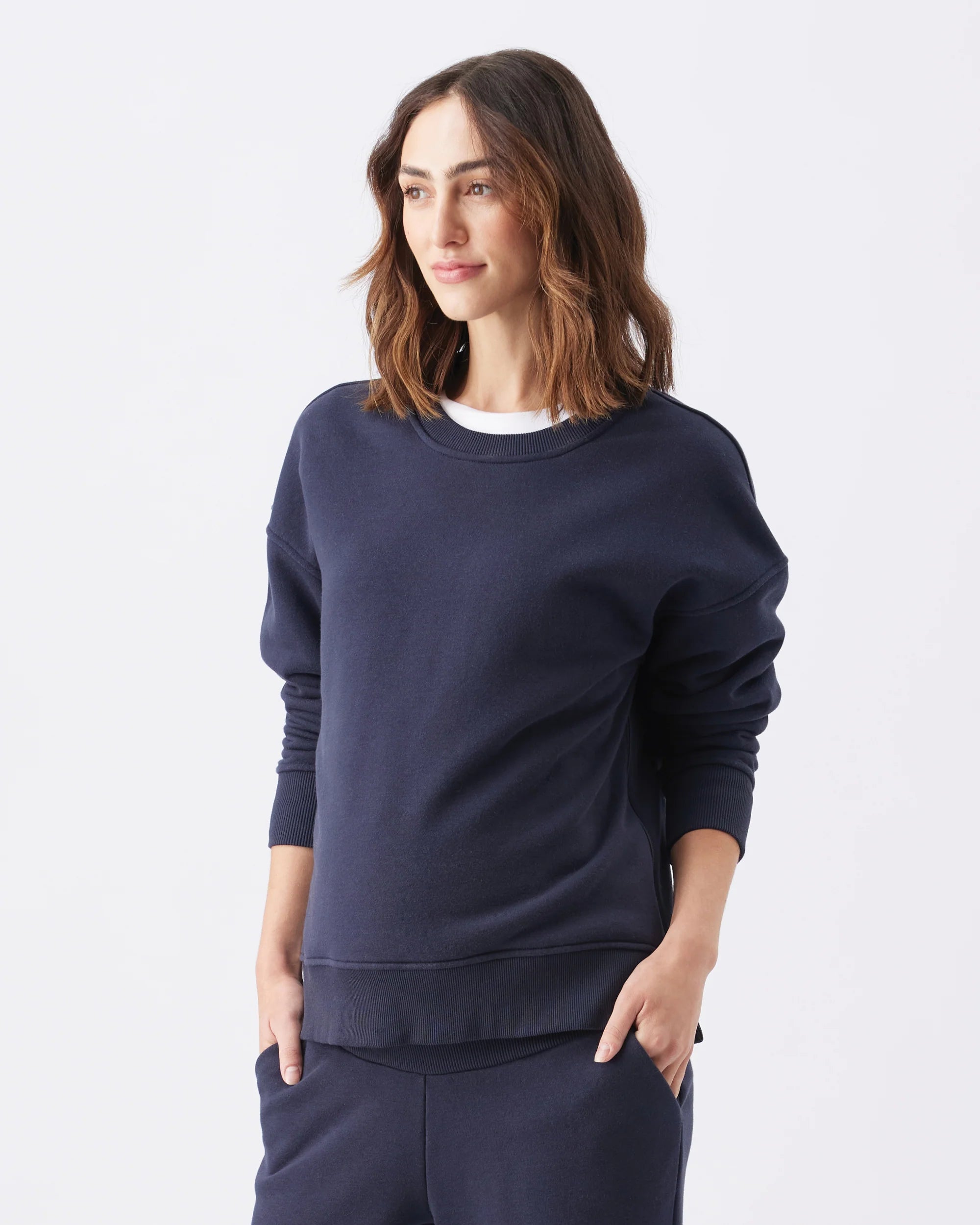 An everyday essential for both pregnancy & post partum. This ultra-soft, classic crew neck is made from a soft fleecy fabric that provides major comfort while running errands or relaxing. Featuring ribbed details on the sleeve cuffs, crew neck, and waistband, with side seam zippers that allow for growth and nursing access. Perfect for every stage of motherhood!