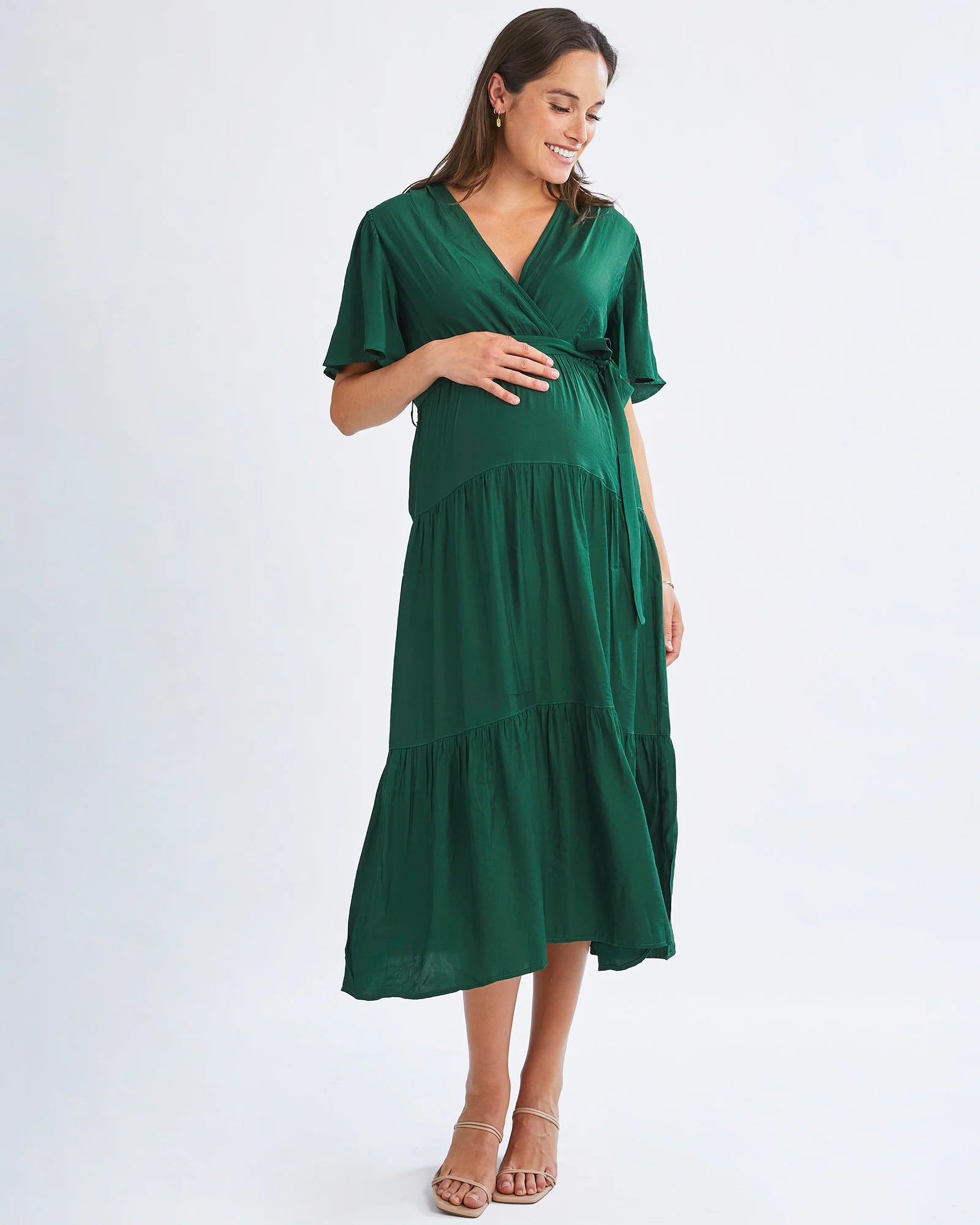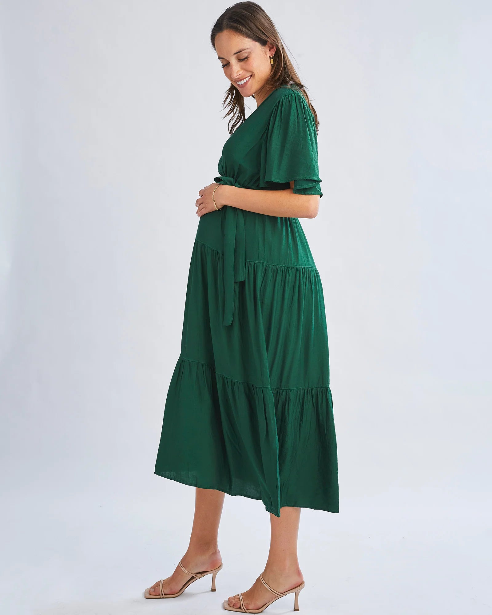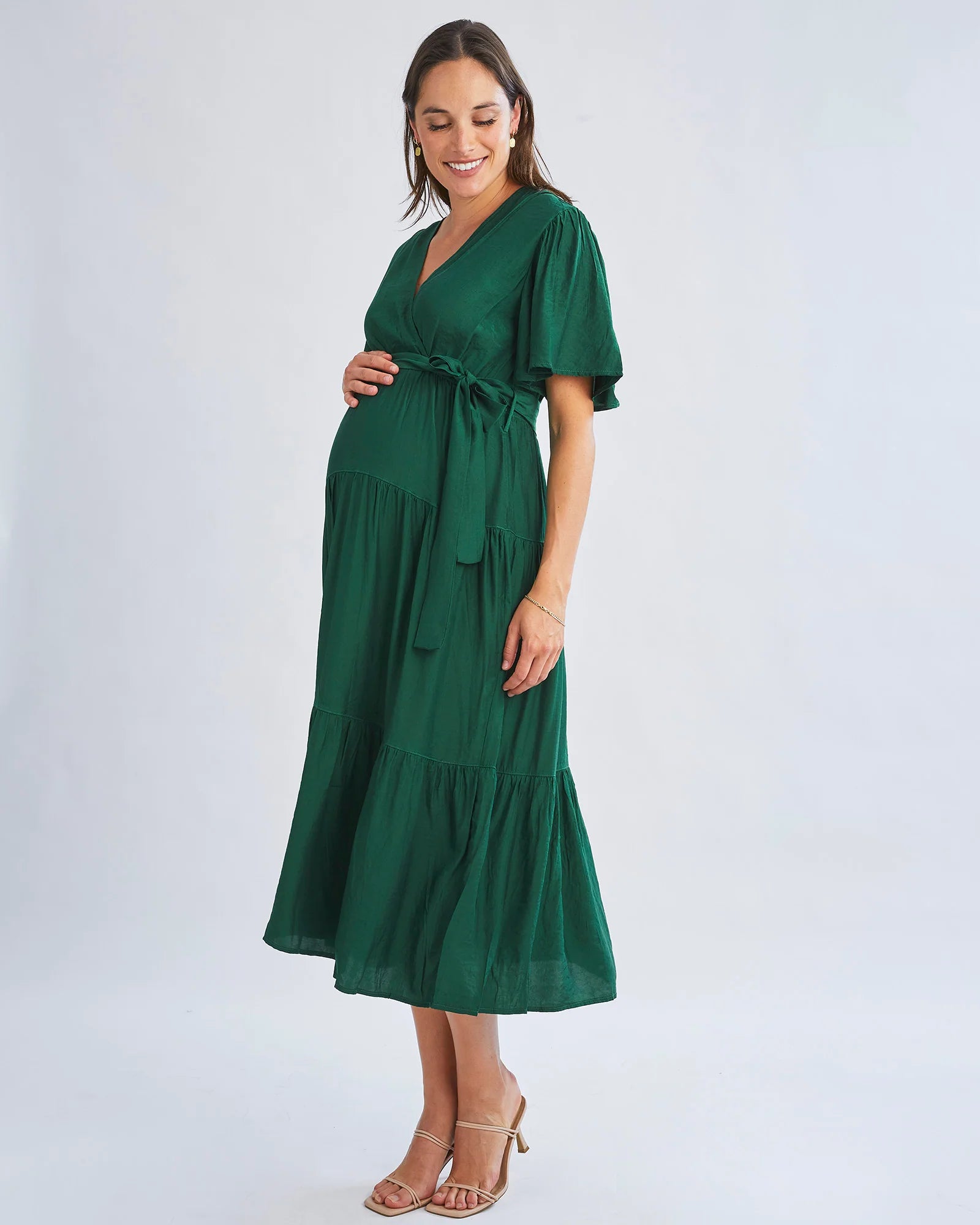 The must have maternity dress is here and it's gorgeous!! With a waist tie that can be tied at the front or back. This sleek design is the perfect dress for your baby shower or any occasions. With this design you can also wear this one post pregnancy for breastfeeding or even if you don't!