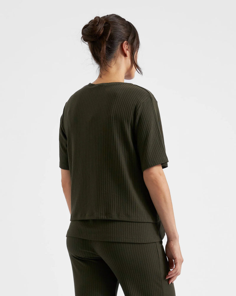 A maternity & nursing top that is the ultimate blend of comfort and convenience for mamas! With a relaxed fit, classic neckline and a clever lift-up overlayer, it offers easy nursing access without compromising on style. Pair it with matching ribbed pants for the most comfortable and stylish set. Our model is 171cm tall, has an 80cm bust, 63cm waist and 90cm hips. She is wearing a small. If you want the matchy matchy look, check out the Cindy Rib Pant for the perfect combo!