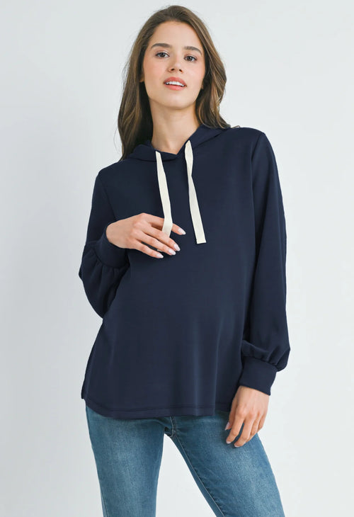 Puff Shoulder Mock Neck Top - Yo Mama Maternity