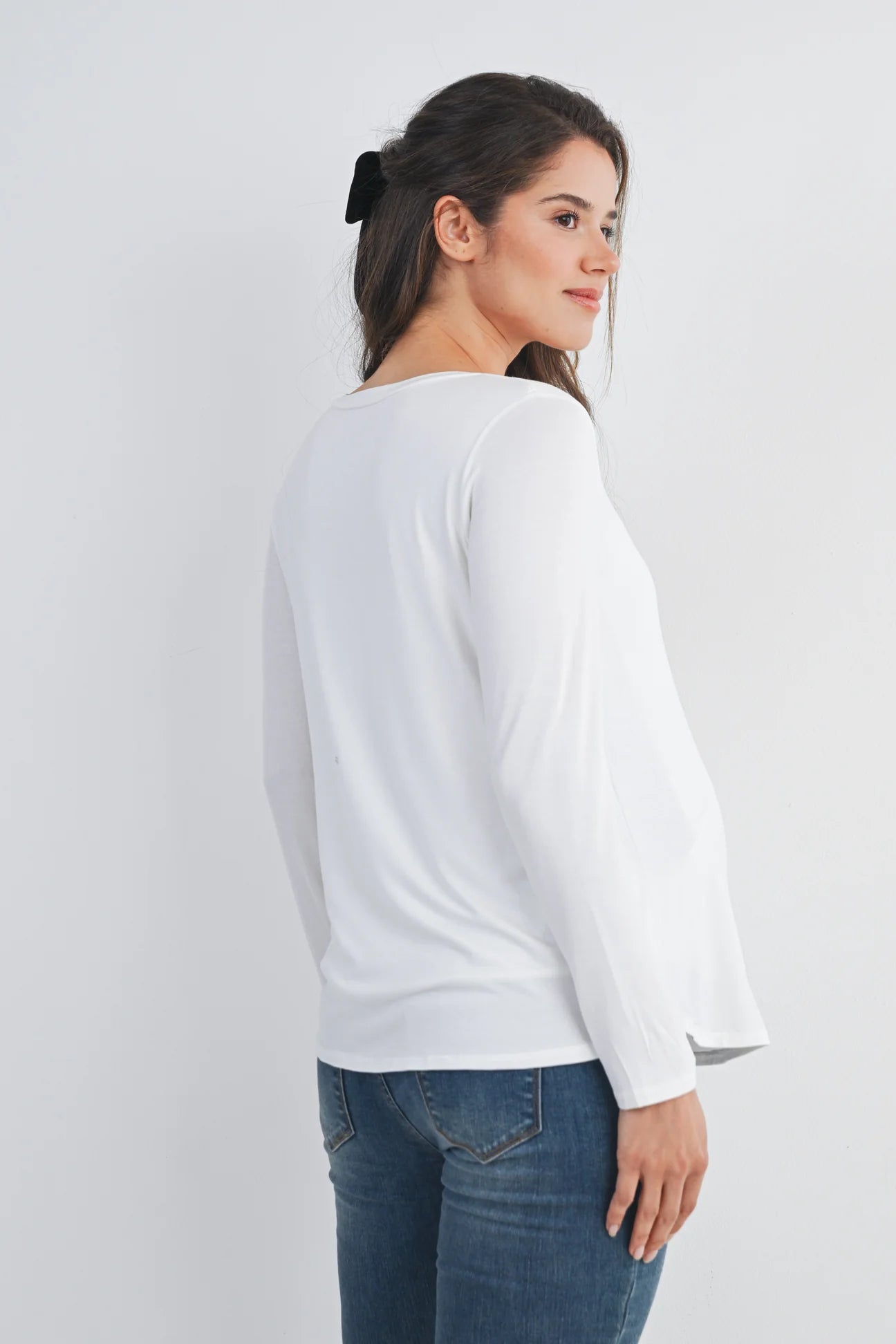 THE perfect long sleeve tee for every stage of motherhood!! Featuring a roomy but flattering fit with a discreet underlayer for easy access for breastfeeding for those who do. This tee will stay a fave long after your bump and breastfeeding days are over.