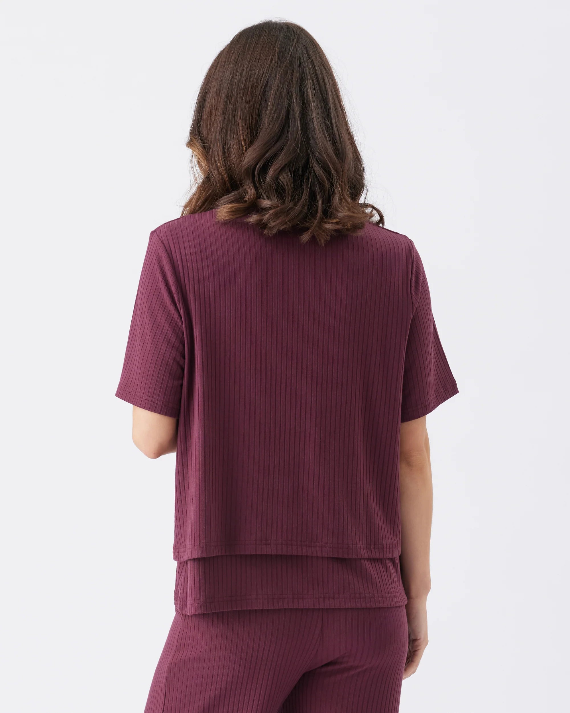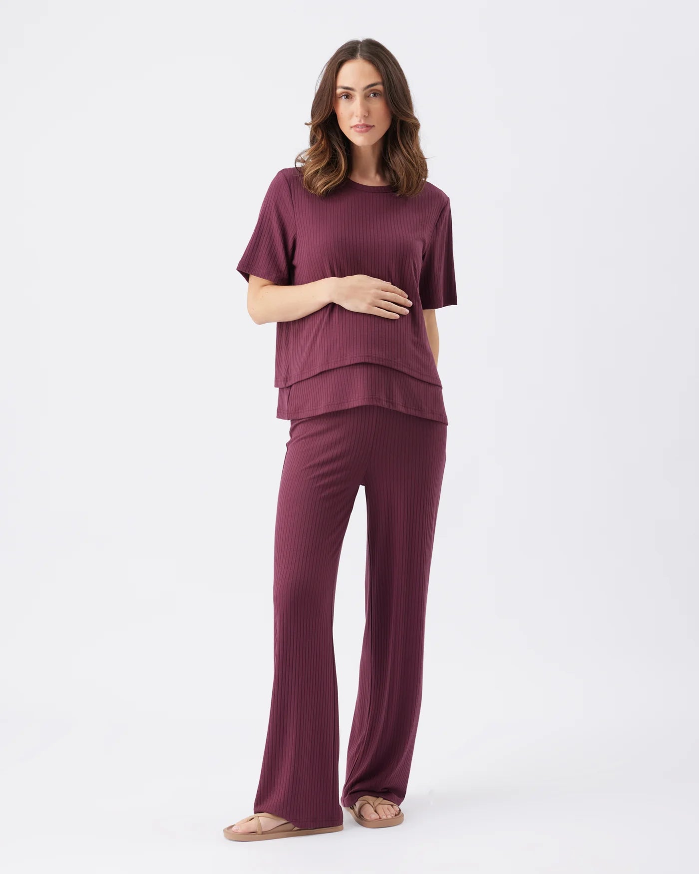 A maternity & nursing top that is the ultimate blend of comfort and convenience for mamas! With a relaxed fit, classic neckline and a clever lift-up overlayer, it offers easy nursing access without compromising on style. Pair it with matching ribbed pants for the most comfortable and stylish set. Our model is 171cm tall, has an 80cm bust, 63cm waist and 90cm hips. She is wearing a small.