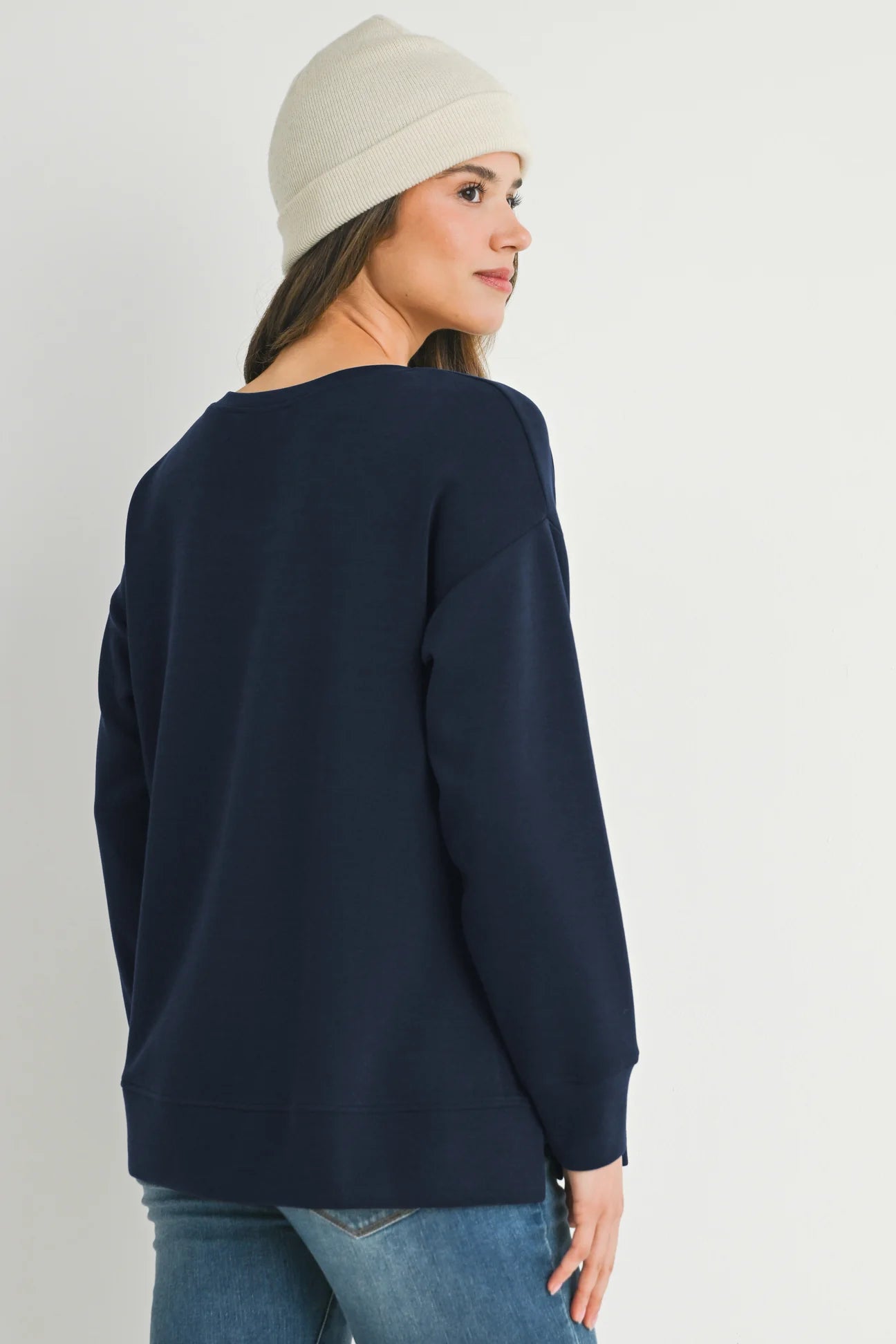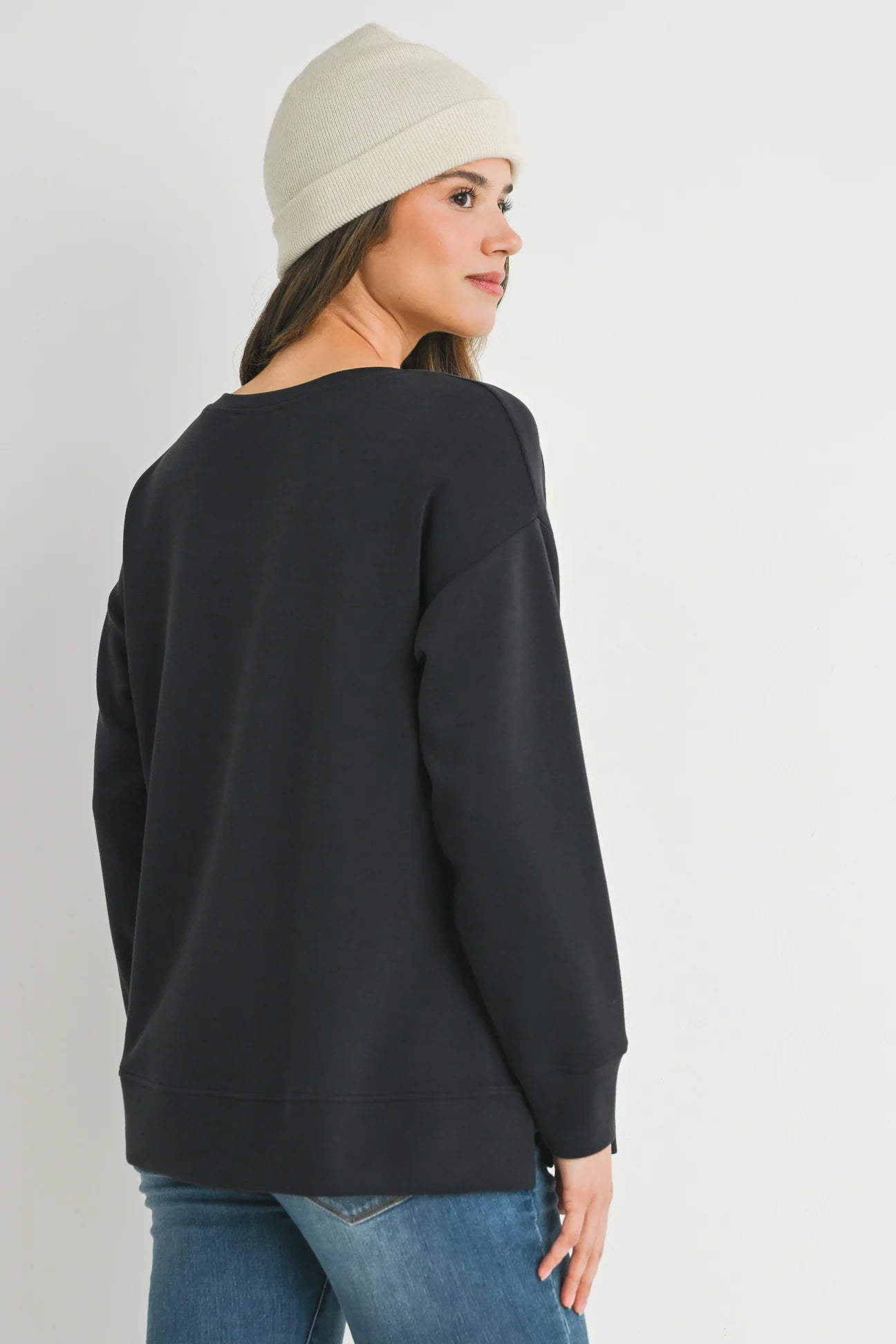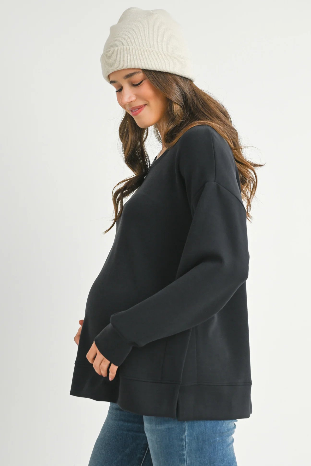 We cannot be the only ones who live for the perfect comfortable sweatshirt?? This adorable maternity sweatshirt is perfect to disguise in those early stages, yet will carry you through your pregnancy with ease! Add your fave nursing tank underneath after babe arrives if you breastfeed. It is the style to have regardless of your stage in motherhood!