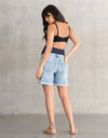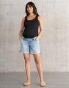 Sail into summer with these on trend denim boyfriend shorts. Featuring the perfect relaxed fit short to carry you through the hotter days of summer in your pregnancy. The stretchy over bump panel will keep you supported & comfortable. With the ability to fold the panel over they will transition into post pregnancy should babe arrive during summer.
